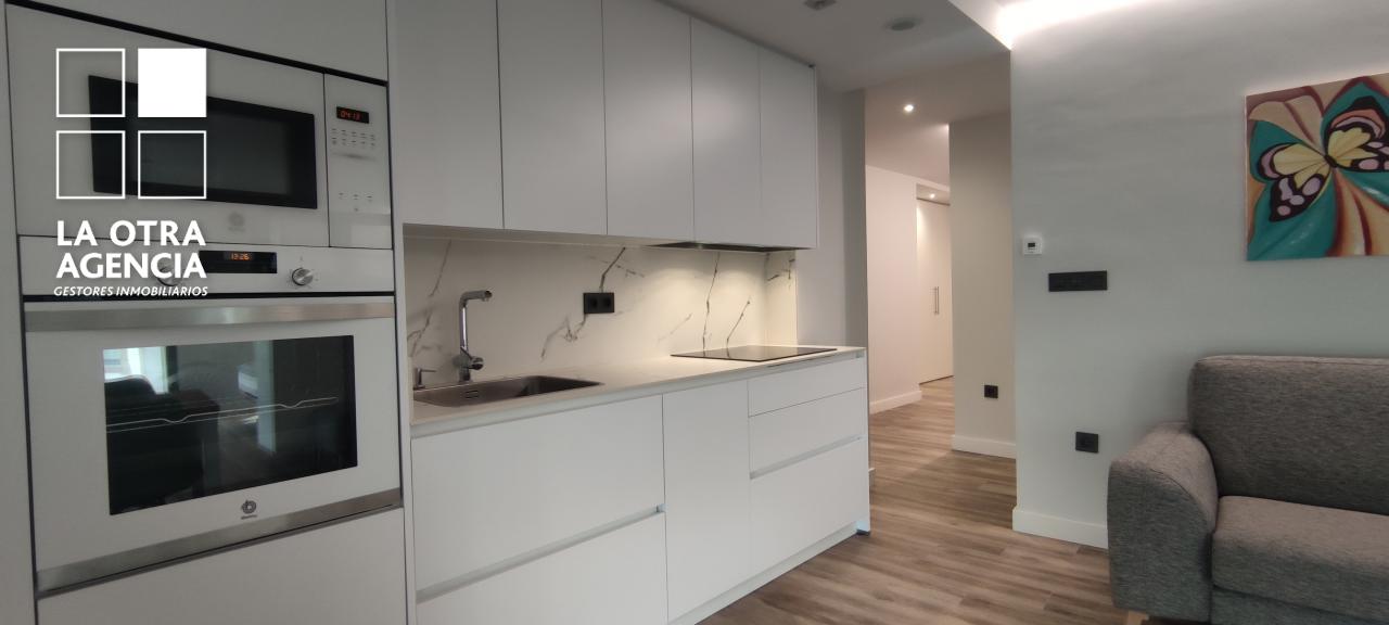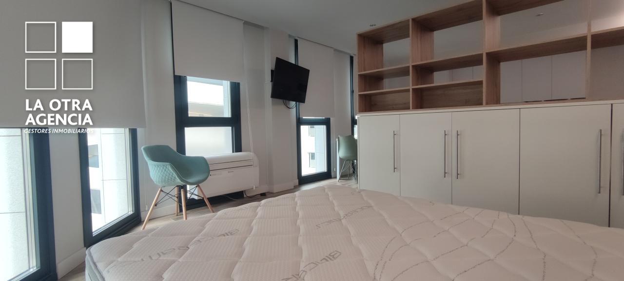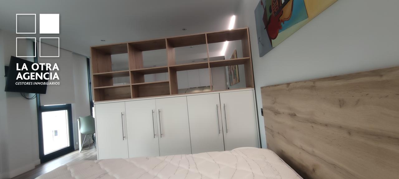 Totalmente amueblado: equipado con mobiliario moderno y funcional, incluyendo sofá, cama, armario, mesa de comedor, electrodomésticos y detalles decorativos que aportan calidez y estilo.
