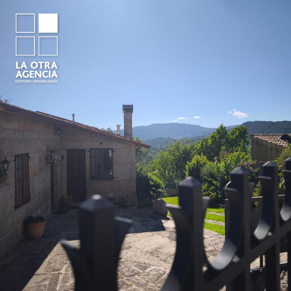 Toda la vivienda se desarrolla en planta baja, rodeada de un generoso jardín que recorre el perímetro y realza la belleza de la piedra. El salón, de 30 m², inunda el espacio de luz natural y brinda panorámicas espectaculares sobre el valle, mientras el sistema de calefacción por pellets garantiza un ambiente cálido y acogedor en cualquier estación.