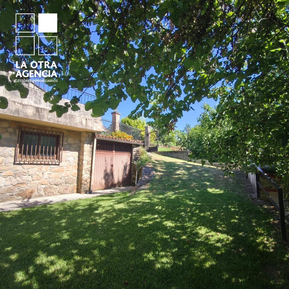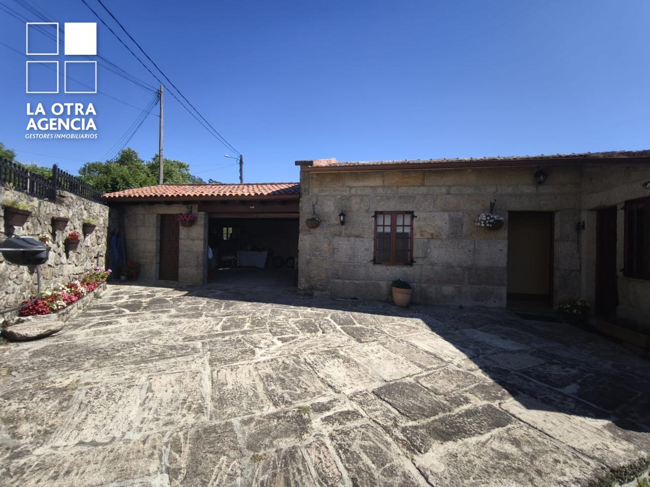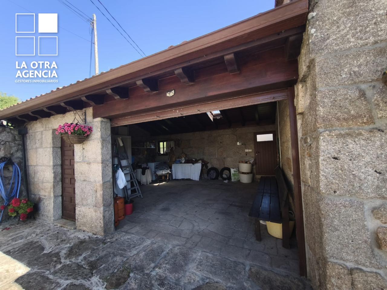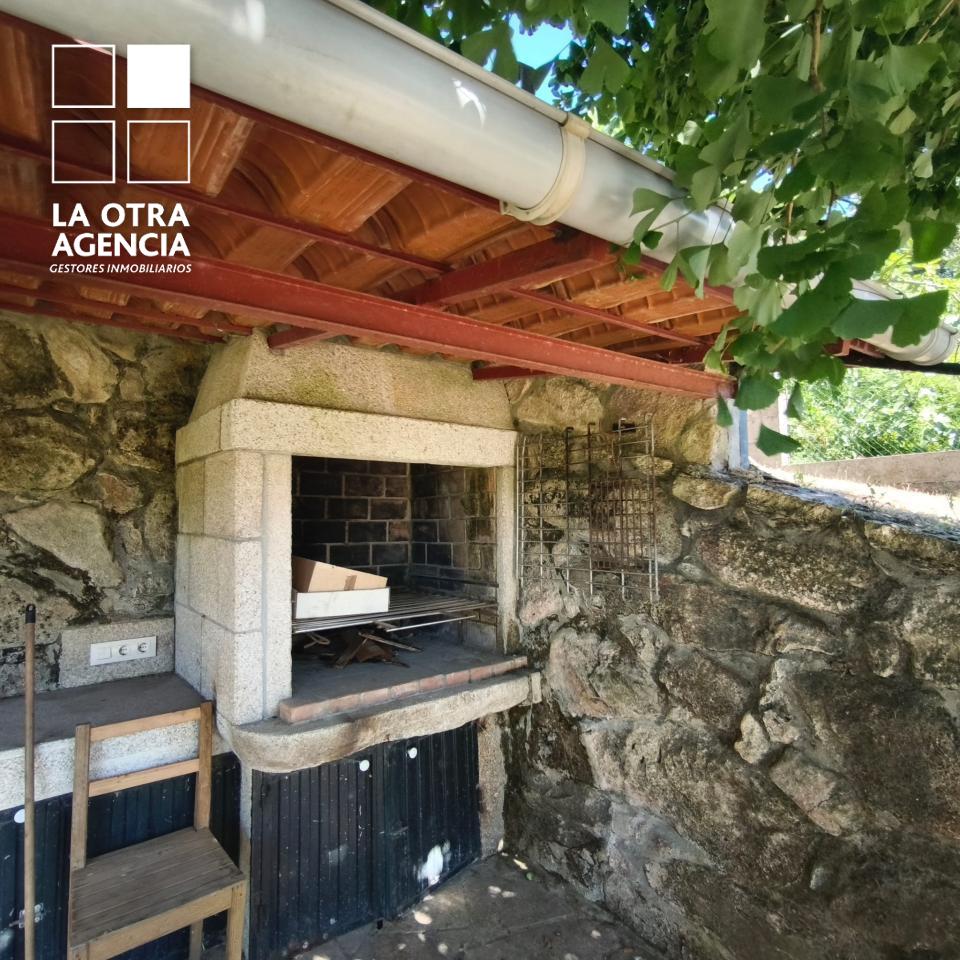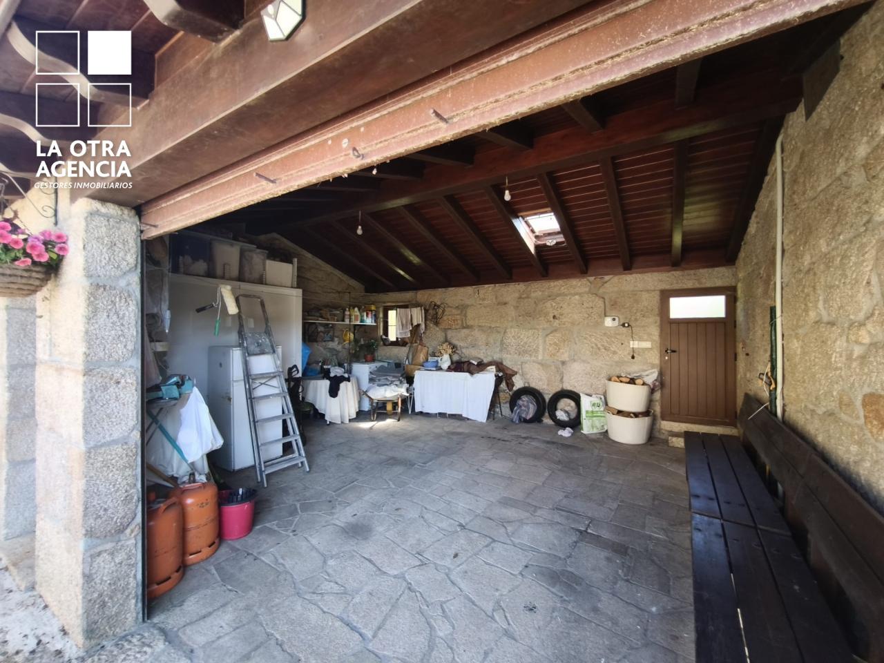 Ubicada en una tranquila calle a tan solo 500 metros de la plaza de Mondariz, la propiedad ofrece acceso excelente y privacidad total. El garaje adosado, con capacidad para varios vehículos y elegantes vigas de madera vistas, da la bienvenida a quienes buscan comodidad sin renunciar al carácter.