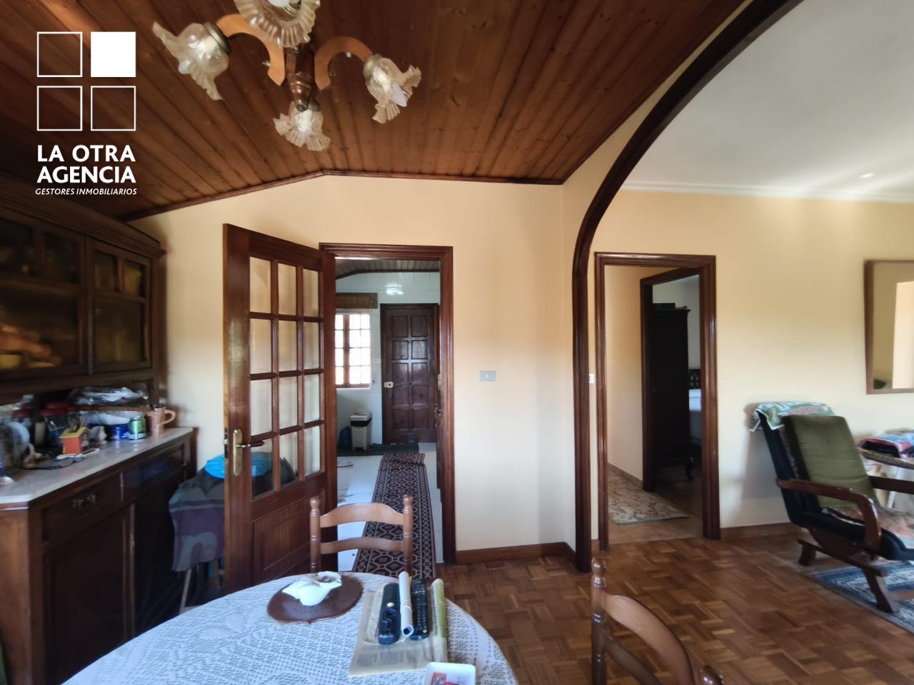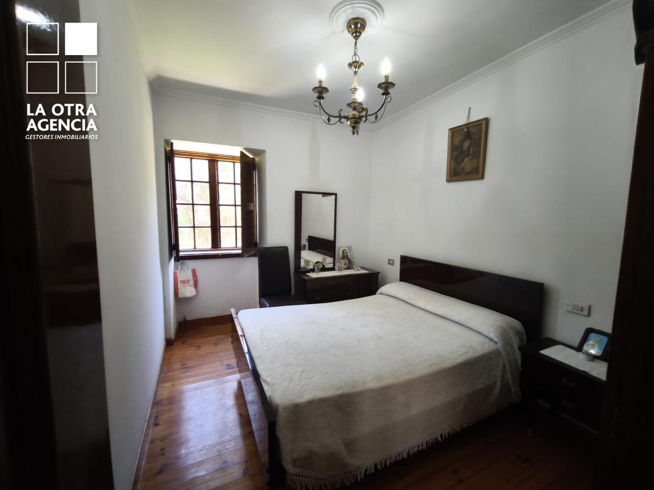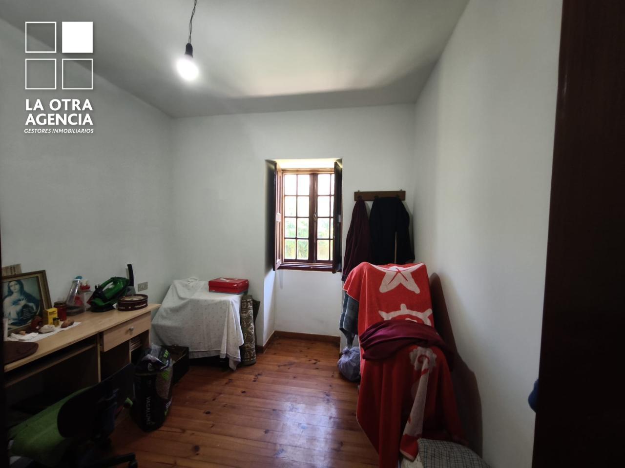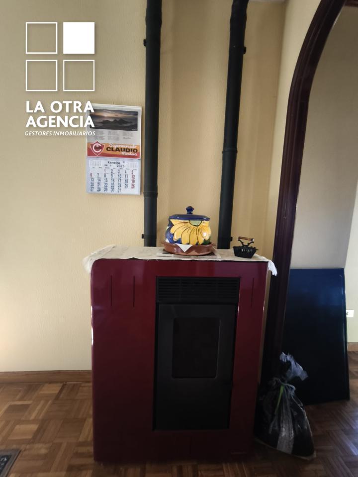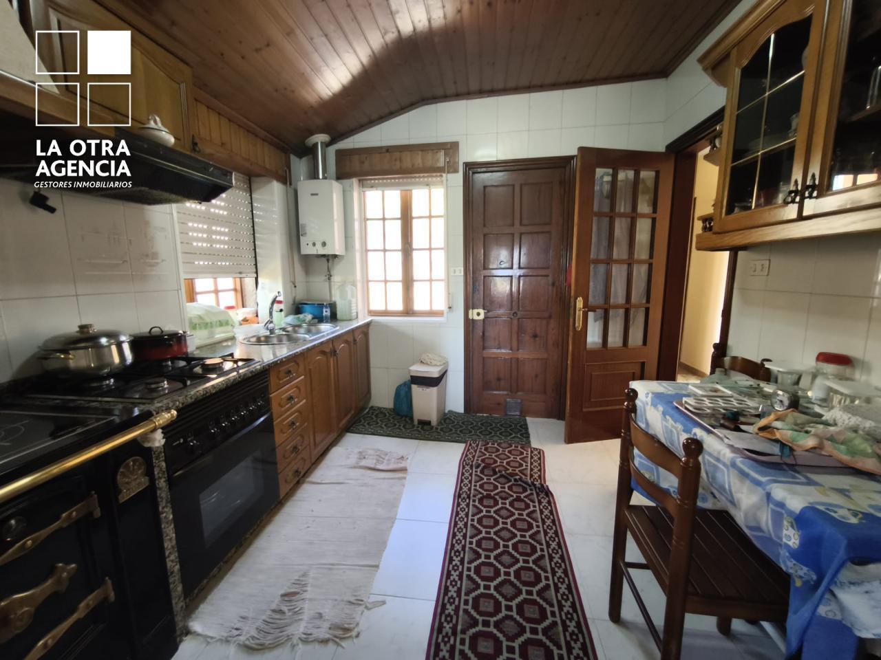 La cocina está equipada con todos los electrodomésticos habituales, pero destaca por su maravillosa cocina de hierro con placa vitrocerámica, que aporta un toque de distinción y tradición. La zona de descanso cuenta con tres dormitorios amplios y un baño, que, aunque funcional, ofrece el potencial de una actualización a gusto de quienes deseen personalizar el espacio. El forjado de hormigón asegura solidez y óptimo aislamiento en toda la vivienda.