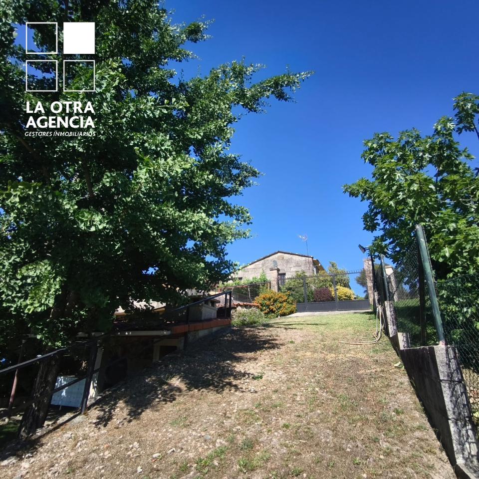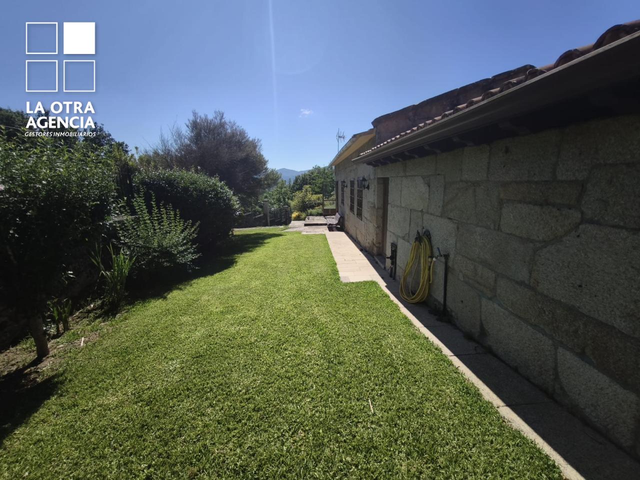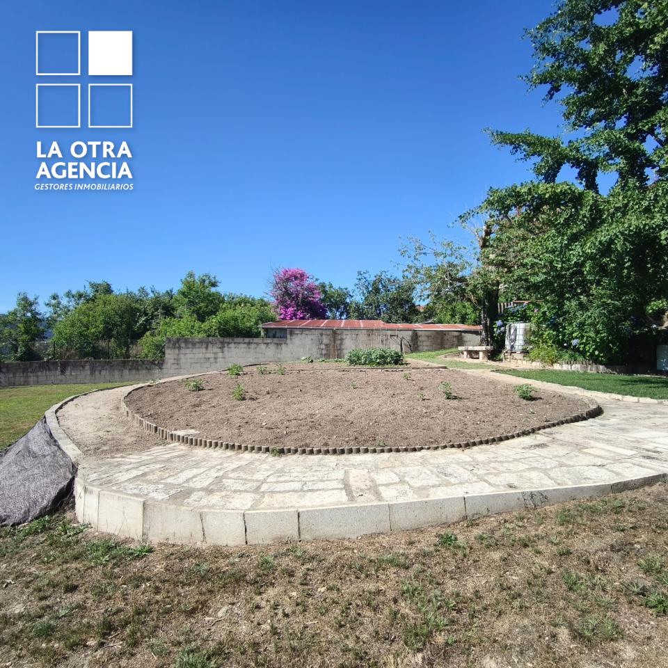 La propiedad cuenta además con una amplia terraza de unos 60 m², perfecta para reunirse con amistades y familia. Bajo ella se ha dispuesto un asador con mesa para doce comensales, ideal para celebraciones al aire libre. Desde aquí se accede a una zona ajardinada llana de aproximadamente 900 m², espacio idóneo para instalar una piscina, zona de juegos o simplemente disfrutar de la tranquilidad.